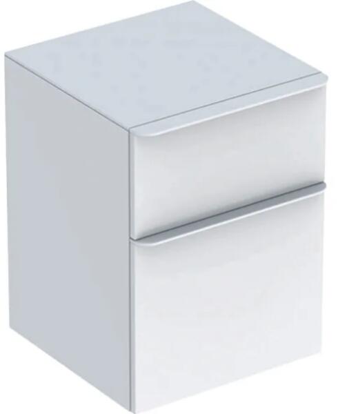 Geberit Smyle szögletes oldalsó szekrény két fiókkal anyag: erősen tömörített háromrétegű forgácslap test és front: fehér / magasfényű lakkozott Fogantyú: fehér / matt porszórt Méret: 450 x 600 x 470 mm (szélesség/szélesség/magasság) Lógó 2 fiókkal kombinálható a mosdókagyló alatti szekrénnyel fiók csendes nyitással fiókkeret fémből üveg fedőlap nedvesség