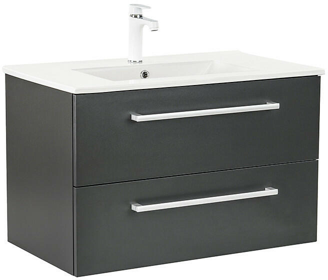 Cersanit Lara 80 szürke alsószekrény Mille kerámia mosdóval S801-340-DSMLara 80 mosdószekrény Garancia: 2 év Anyag: forgácslap 16 mm Bruttó súly: 40,2 kg Nettó súly: 38,3 kg Telepítés: falra függesztett Magasság: 45,2 cm Szélesség: 79,4 cm Mélység: 44,7 cm Kivitel: 2 fiók Fiókrendszer lágyan záródó mechanizmussal krómozott fogantyúk Szín: szürke Mille 80 mosdó Garan