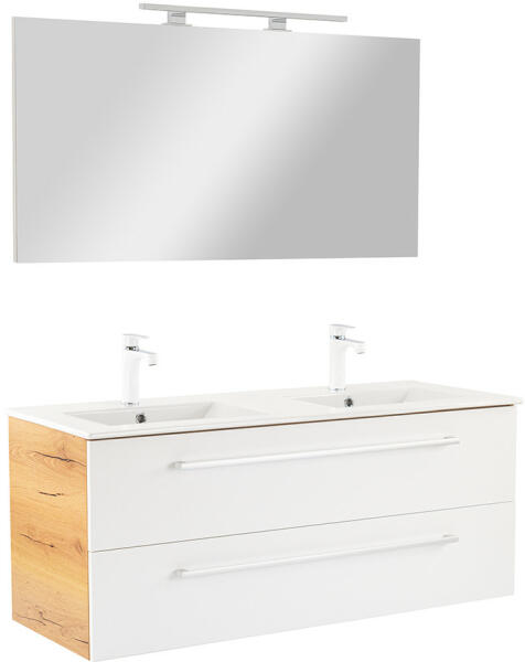 Vario Clam 120 komplett fürdőszoba bútor tölgy-fehér - stílusos és modern fürdőszobabútorA Vario Clam 120 alsó szekrény ideális választás a modern fürdőszobákba, amely ötvözi az eleganciát és a funkcionalitást. A Vario Clam 120 komplett fürdőszoba bútor egy stílusos és praktikus választás modern fürdőszobához. Kompakt méretei ideálisak kisebb és közepes méret