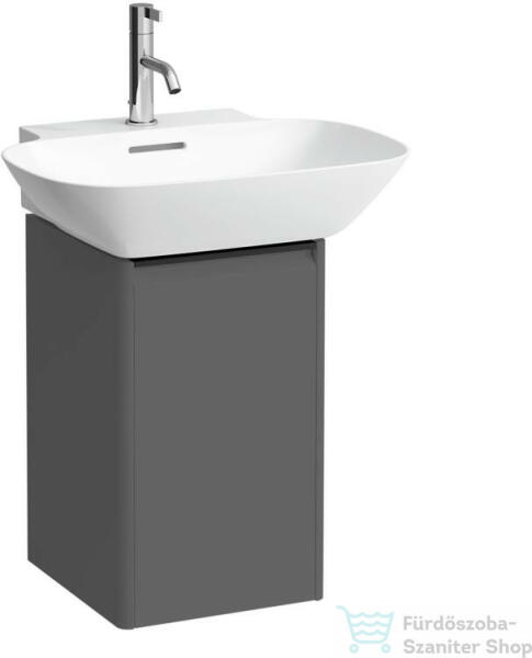 Laufen Base matt antracitszürke alsószekrény 32x34x52 cm balos ajtóval H4030231102661 Laufe Ino H810302 mosdó variációihoz Telepítés: fali, lábbal kiegészíthető Súly: 11 kg Alapanyag: MDF Felület: PVC fólia és ABS élek Szín: matt antracitszürke Méret : 31,7x33,9x51,5 cm Kivitel: egy ajtóval (zsanér a bal oldalon ) Fékezett záródással (soft-close mechanizmus) Integrált a