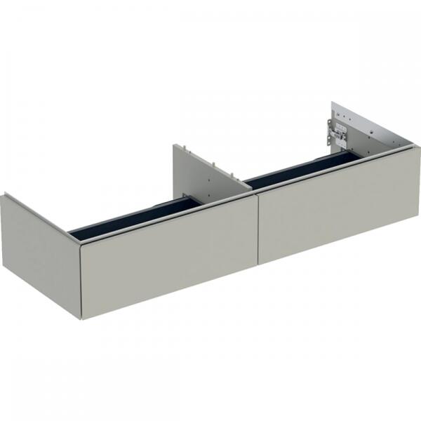 Geberit One alsó szekrény mosdóhoz két fiókkal 133x47cm, matt greige 505.076. 00.7 Tulajdonságok Méretek: 133,2x26,6x47 cm Szélesség: 133,2 cm Mélység: 47 cm Szín: matt greige Alapanyag: nagy tömörségű háromrétegű farostlemez Maximális fiókterhelés: 30 kg Falra szerelhető Teljesen használható tárolóhely a felső fiókban Két fiókkal Push-to-open mechanizmus a nyitásho
