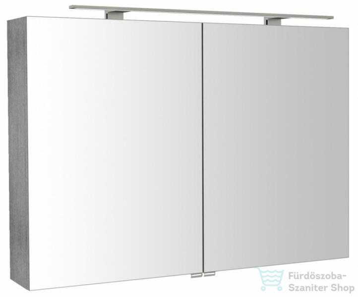 Sapho Riwa két ajtós tükrös szekrény LED világítással 101x70x17cm, ezüst tölgy RIW100-0011 Garancia: 24 hónap Jótállás: 2 év Anyag: MDF/laminált Súly: 31,50 kg Fogantyúval ellátva Teljesítmény: 10 W Feszültség: 230 V Méret: 101x70x17 cm Szélesség: 1006 mm Magasság: 701 mm Mélység: 172 mm Világítás típusa: LED Fényerő: 791 lm Színled: hidegfehér (5 700- 6 500 K)