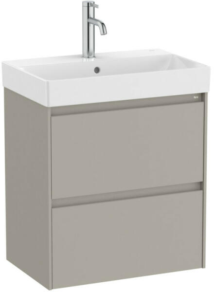 Roca Ona 2 fiókos kompakt alsószekrény 55x36x64,5 cm FineCeramic mosdóval, homokszürke A851683510 Alsószekrény tulajdonságai: Gar ancia: 2 év Anyag: MDF Telepítés: falra Magasság: 565 mm Magasság mosdóval: 645 mm Szélesség: 535 mm Szélesség mosdóval: 550 mm Mélység: 360 mm Fiókok száma: 2 Teljesen kihúzható, lágyan záródó fiók Beépített fogantyúkkal Szín: homoksz