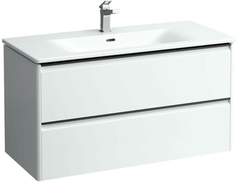 Laufen Palace 2 fiókos alsószekrény mosdóval 100x45 cm, matt fehér H8617072601041 Szerelés: falra Mosdó méret: 100x45 cm Szekrény méret: 98,3x43,8 cm Teljes magasság: 54,5 cm Vékony mosdó alsószekrénnyel Mosdó alapanyaga: kerémia 1 Csaplyukkal 2 fiókkal Soft Closing rendszerrel, fiók rendezővel Fekete alumínium fogantyúval Hagyományos és helytakarékos szifonnal is szerelhe