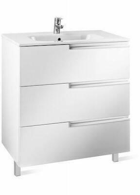 Roca Unik Victoria-N Family 3 fiókos alsószekrény mosdóval 80 cm, magasfényű fehér A855837806 Garancia: 2 év Falra szerelt Szélesség: 800 mm Mélység: 460 mm Magasság: 740 mm Kivitel: 3 fiókos, csillapított záródás Mosdó anyaga: porcelán 1 nyitott csaplyuk furattal középen Szín: magasfényű fehér Csaptelep és leeresztő nélkül Lábbal és akasztóval kiegészíthető, k