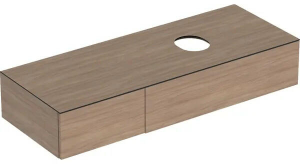 Geberit VariForm alsó szekrény pultra ültethető mosdóhoz 135x51 cm, 2 fiókkal, pakolófelülettel, tölgy 501.181. 00.1 Tulajdonságok Méretek: 135x23,5x51 cm Szélesség: 135 cm Test és előlap: tölgy / melamin faszerkezet Takarólap: tölgy / melamin faszerkezet Alapanyag: nagy tömörségű háromrétegű farostlemez Alkalmas minden VariForm pultra ültethető mosdóhoz Falra szerelhet