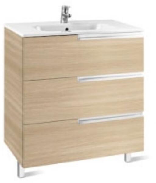 Roca Victoria-N Unik Family alsószekrény mosdóval 60 cm tölgy A855839155 Méret: 80x46x74 cm 3 fékezett záródású fiók Kerámia mosdó, csaplyukkal, túlfolyóval Opcionálisan rendelhető: bútorláb, törölközőtartó Csaptelep és leeresztő nélkül