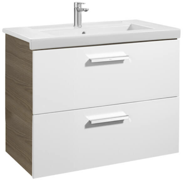 Roca Unik Prisma 2 fiókos alsószekrény mosdóval 800 kőris/fehér A855952322 Telepítés: falra függesztve Anyag: MDF/laminált Szélesség: 800 mm Mélység: 460 mm Magasság: 694 mm Kivitel: 2 fiókkal Mosdó anyaga: porcelán Mosdó mérete: 80x45x13 cm 1 nyitott csapfurattal Szín: kőris/fehér Kiegészíthető lábbal és törölközőtartóval (nem tartozék) A csaptelep nem tartozék.