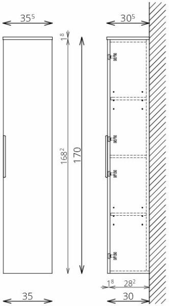 CERSANIT - VIRGO szekrény magas, szürke, S522-034 A VIRGO konceptuális kollekció fürdőszobabútorai a funkcionalitás, az elegancia és a modernitás kombinációja. A sorozat szekrényei krómozott fém fogantyúkkal rendelkeznek, amelyek tökéletesen illeszkednek a fürdőszoba többi szerelvényéhez. A VIRGO függesztőoszlopok fa szerkezetű forgácslapból készülnek, szürke tölgy