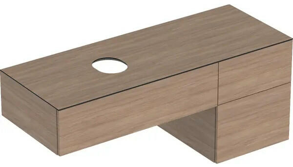 Geberit VariForm alsó szekrény pultra ültethető mosdóhoz 135x51 cm, 3 fiókkal, pakolófelülettel, tölgy 501.193. 00.1 Tulajdonságok Méretek: 135x55x51 cm Szélesség: 135 cm Test és előlap: tölgy / melamin faszerkezet Takarólap: tölgy / melamin faszerkezet Alapanyag: nagy tömörségű háromrétegű farostlemez Alkalmas minden VariForm pultra ültethető mosdóhoz Falra szerelhető