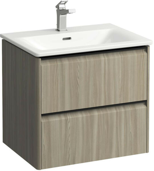 Laufen Palace 2 fiókos alsószekrény mosdóval 60x45 cm, világos szil H8617022611041 Szerelés: falra Mosdó méret: 60x45 cm Szekrény méret: 57,9x43,8 cm Teljes magasság: 54,5 cm Vékony mosdó alsószekrénnyel Mosdó alapanyaga: kerémia 1 Csaplyukkal 2 fiókkal Soft Closing rendszerrel, fiók rendezővel Fekete alumínium fogantyúval Hagyományos és helytakarékos szifonnal is szerelhe
