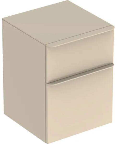 Geberit Smyle Square kiegészítő szekrény 45x60 cm, homokszürke 500.357. JL. 1 Alapanyag: nagy tömörségű háromrétegű farostlemez Méretek: 45x60x47 cm Foganytú színe: homokszürke / matt porbevonatos Falra szerelhető Mosdószekrénnyel összeépíthető Két fiókkal Fogantyú a nyitáshoz Fiók behúzósínnel Nedvességtűr Fém fiókkeret Üveg takarólap Oldalszekrény Rögzítő