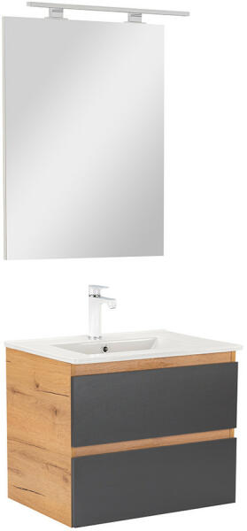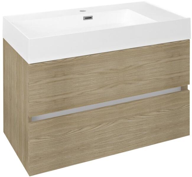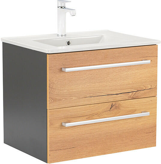 Termék részletekSzín / felület Mosdó: fehérTest és előlap: tölgy / melamin faszerkezetFogantyú: láva / matt porbevonatos Csapfurat: Középen Túlfolyó Nélkül Méret 90x48cmMűszaki adatok Alapanyag Fine fireclay / high-compressed three-layer chipboard Tulajdonságok Falra szerelhető Két fiókkal Keskeny perem Fiók behúzósínnel Fogantyú a nyitáshoz Cserélhető fogantyú Fiók szifonkivágás