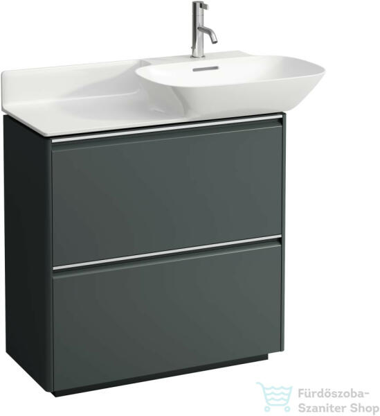 Laufen Base matt antracitszürke alsószekrény 77x35x78 cm kettő fiókkal H4030021102661 Laufe Ino H813301 és 813302 mosdó variációihoz Telepítés: álló Súly: 36 kg Alapanyag: MDF Felület: PVC fólia és ABS élek Szín: matt antracitszürke Méret : 76,9x34,8x76,8 cm Kivitel: kettő fiókkal (teljesen kihúzható) Fékezett záródással (soft-close mechanizmus) Integrált alumínium f