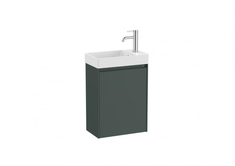 Roca Ona egy ajtós alsószekrény 45x26x64,5 cm, FineCeramic kézmosóval, matt zöld A851678513 Ona termékcsalád egyszerű, mint a természet. Funkcionális anélkül, hogy hidegnek tűnne, tiszta esztétikája, amely követi a természeti környezet eredendő melegét. Azoknak készült, akik élvezik a csendes tájak erejét. Alsószekrény tulajdonságai: Gar ancia: 2 év Telepítés: falra
