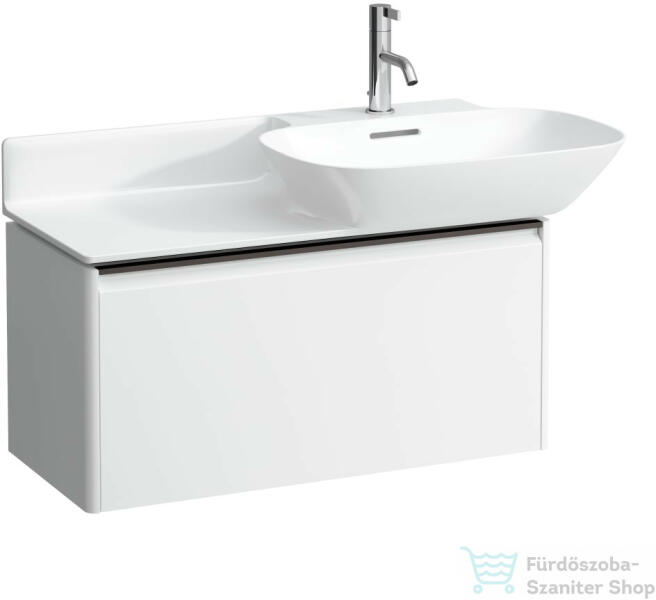 Laufen Base fényes fehér alsószekrény 77x35x37 cm egy fiókkal H4030031102611 Laufe Ino H813301 és 813302 mosdó variációihoz Telepítés: falra Súly: 17 kg Alapanyag: MDF Felület: PET fólia és ABS élek Szín: fényes fehér Méret: 76,9x34,8x36,2 cm Kivitel: egy fiókkal (teljesen kihúzható) Fékezett záródással (soft-close mechanizmus) Integrált alumínium fogantyú Fogantyú s