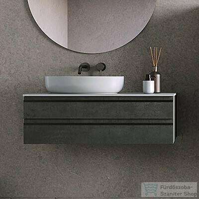 KolpaSan ALEXIS alsó szekrény, több méretben Kerrock anyagból készült pulttal, választható mosdóval. 2022-es újdonság, divatos színekben, széles méretválasztékban. Kerrock fedlappal rendelkező, fürdőszoba bútor. Rejtett bemart fogantyúkkal tervezték, fiókrendezője széria tartozék. Front: MDF nemesített 3D fóliával. Korpusz: nemesített forgácslap Fogantyúk: fekete f