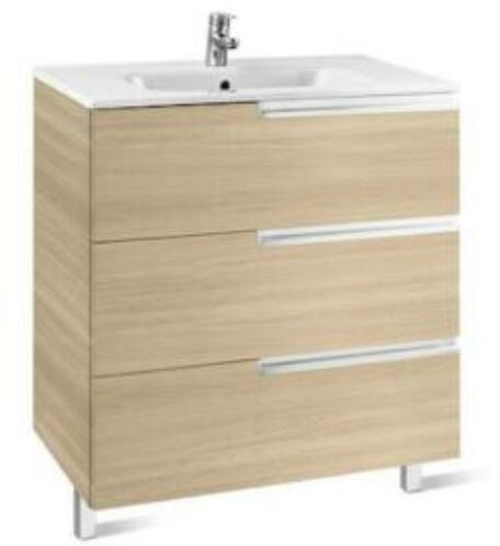 Roca Victoria-N Unik alsószekrény mosdóval 100 cm tölgy A855836155 Méret: 100x46x74 cm 3 fékezett záródású fiók Kerámia mosdó, csaplyukkal, túlfolyóval Opcionálisan rendelhető: bútorláb, törölközőtartó Csaptelep és leeresztő nélkül