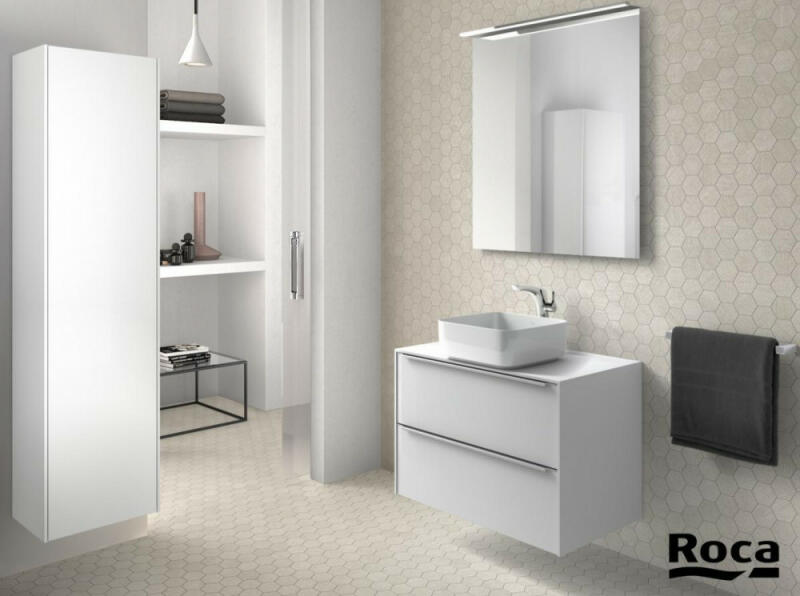 Roca Inspira alsószekrény mosdóval 80x50 A851076402 Méret: 80x50x67,5 cm Soft-Close fiókok Fiókok száma: 2 Helytakarékos szifonnal Falra szerelhető, lábakkal kiegészíthető