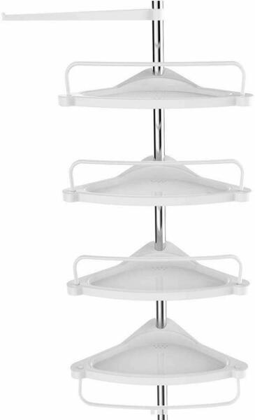 SONGMICS állítható fürdőszobai sarokpolc, teleszkópos zuhanykabin, 95-300 cm, padlótól mennyezetig, rozsdamentes acél kerettel, 4 tálcával, 3 kampóval, 1 törülközőtartóval, fehér és ezüst Szín: fehér, ezüst Anyaga: 304 rozsdamentes acél, PP műanyag, ABS, PVC Megfelelő magasság a padlótól a mennyezetig: 95-300 cm Az alsó lábak átmérője: 7 cm A termék súlya: 1,7 k