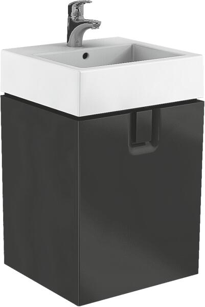 Kolo Twins matt fekete mosdószekrény ajtóval 50 (89485000) 50x57x46 cm falra rögzíthető mosdó külön rendelhető és kombinálható L51150, L51151 mosdóval záráscsillapító pánttal felszerelt ajtók 1 állítható polc, fogantyú választható bal/jobb oldali szekr&a