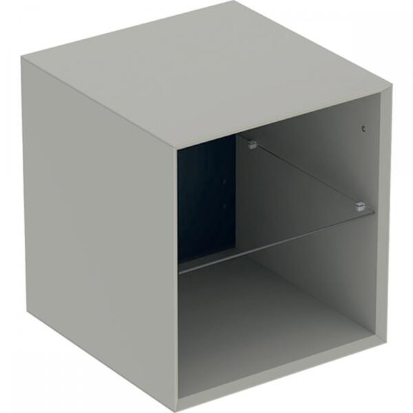 Geberit ONE oldalsó polcelem, 45x49.2x47cm, greige / matt bevonat 505.079. 00.7 Tulajdonságok FSC C134279 tanúsítvánnyal Falra szerelhető Üvegpolccal Nedvességtűrő Előszerelve szállított Műszaki adatok Alapanyag Nagy tömörségű háromrétegű farostlemez Száll&a
