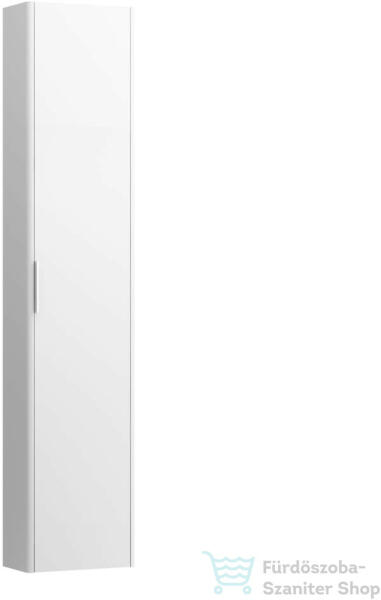 Laufen Base fényes fehér magas szekrény 35x165x18 cm jobbos ajtóval H4026421102611 Telepítés: fali, lábbal kiegészíthető Súly: 22,5 kg Alapanyag: MDF Felület: PET fólia és ABS élek Szín: fényes fehér Méret: 35x18,5x165 cm Kivitel: egy ajtóval (zsanér a jobb oldalon ) Fékezett záródással (soft-close mechanizmus) Integrált alumínium fogantyú Polcok száma: 5 db (1 db fix