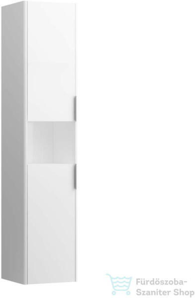 Laufen Base fényes fehér magas szekrény 165 cm 2 balos ajtóval és nyitott résszel H4026911102611 Telepítés: fali, lábbal kiegészíthető Súly: 34 kg Alapanyag: MDF Felület: PET fólia és ABS élek Szín: fényes fehér Méret: 35x33,6x165 cm Kivitel: kettő ajtóval (zsanér a bal oldalon ) Fékezett záródással (soft-close mechanizmus) Integrált alumínium fogantyú Színazonos ny