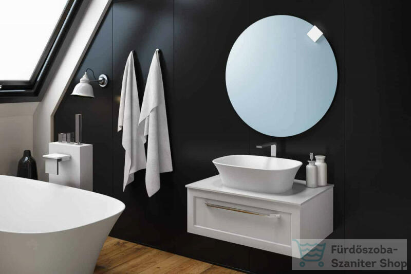 BLANCHE OB75 alsó szekrény, Kerrock pulttal mosdó nélkül A mosdót nem tartalmazza ! Méret (széles x mély x magas): 750 x 525 x 292 mm Blanche alsóbútor, ráültethető öntöttmárvány mosdós szekrény Kerrock pultal. A bútor anyaga nemesített 3D fólíával bevont MDF lap. A Kerrock lapon nincs csapfurat. Vékony falú, lágyan záródó fém fiókok, krómozott fém fogantyúkkal.