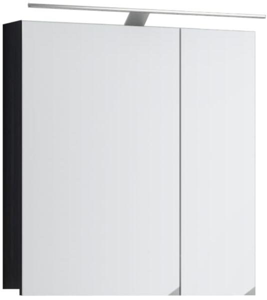 Venezia Like II. fürdőszoba bútor szett magasfényű fekete színben (matt fekete oldalsó elemek). A készlet tartalmazza a mosdószekrényt, a faliszekrényt, a porcelánt mosdót (alább kiválasztandó) szifonnal és a fali tükröt polccal. A mosdószekrény tágas helyet biztosít a tárolásra, az ajtó a felső rész enyhe megnyomásával lenyitható (push to open rendszer). 16 mm vasta