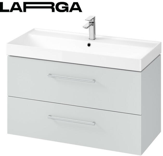 Cersanit Larga, mosdószekrény 100 cm, matt szürke, S932-078 LARGA mosdószekrény szürke belsővel, két tágas, lágyan záródó fiókkal. A forgácslap, amelyből a szekrény készül, FSC MIX 70% SGSCH-COC-007574. Bútor mart fogantyúk három színben választhatók (ezüst, arany, fekete), külön vásárolhatók meg, nem a szekrény része !! A mosdókagyló szekrény LARGA bútormosdó