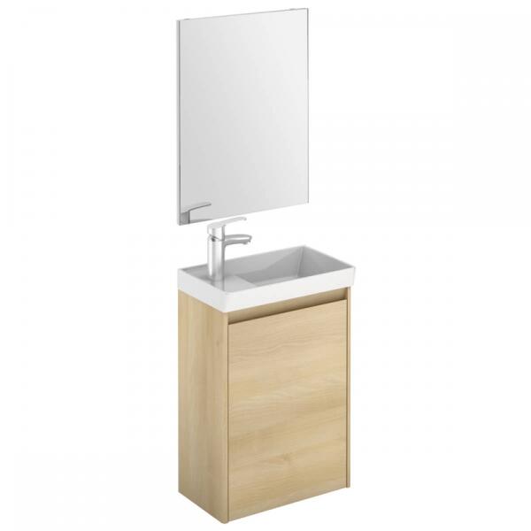 Royo Bannio Enjoy 45 fali kézmosó szett, rovere nordik 125142 Enjoy 45 fali mosdószekrény, kézmosóval tükörrel Nyíló ajtó lassú záródással Egy üvegpolc Kerámia kézmosó Csaptelep és a szifon nem tartozék!
