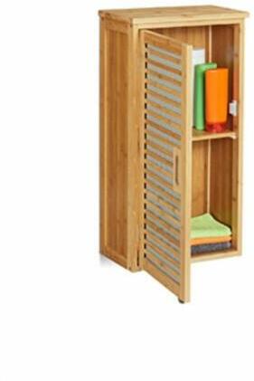AKINO Bambusz Fürdőszoba Szekrény A fürdőszobai eszközöket és fürdőszobai kiegészítőket 2 szinten tárolhatja Fogkeféhez, kozmetikumokhoz, borotvákhoz és sok más egyéb aprósághoz Dekoratív lamellás bambusz ajtókkal Szürke szövetből készült betét az ajtóban Nedves helyiségekhez, például fürdőszobákhoz, konyhákhoz és mosdókhoz ajánljukTeljes mérete: 66 x 35 x