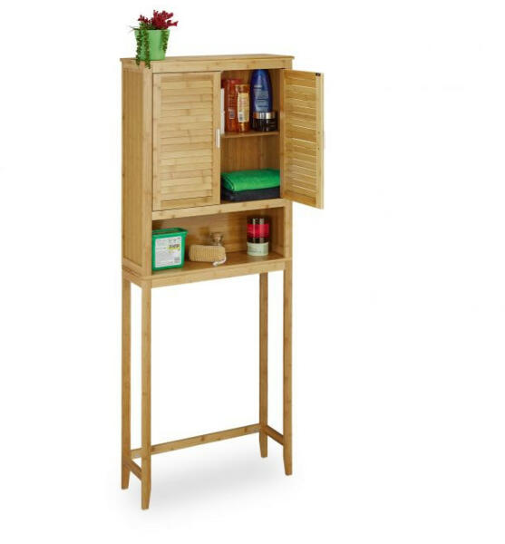 LAMELL bambusz fürdőszoba szekrény Ez a fürdőszobai tárolószekrény mágneses szekrényajtóval, kivehető polcokkal rendelkezik. Helytakarékos szekrény, WC vagy mosógép fölé. A konzollal a falhoz rögíthető, hogy biztonságosan álljon. Méret: 176 x 70 x 22,5 cm A mosógép területe: 86,5 x 61 x 18,5 cm Bambusz, MDF