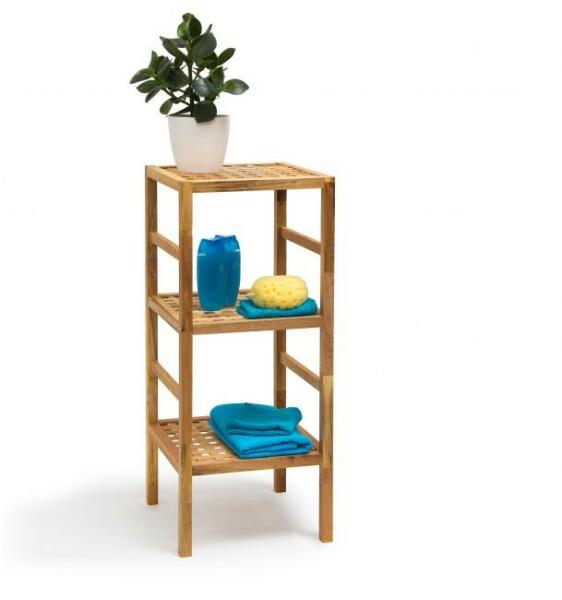 Rusztikus megjelenésű fürdőszoba bútor 3 polccal helyet biztosít törölközőknek, krémeknek vagy kozmetikumoknak. A fa természetes tónusa egyszerű szépséget áraszt. Méret: 85 x 35,5 x 35,5 cm Súly: 3,3 kg Anyag: Tömör, olajozott diófa