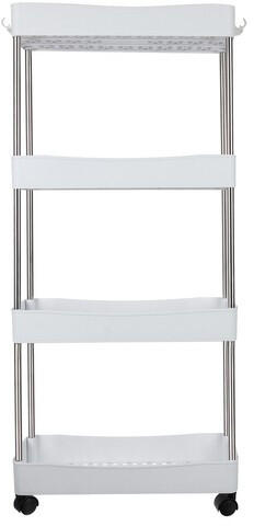 A sokoldalú fémpolccal értékes tárolóhelyet teremthet. A 4 szinten helyet biztosít a törölközőknek és a kozmetikumoknak a fürdőszobában, a kellékeknek a konyhában vagy a dekorációnak és a nappaliban a növényeknek. Kompakt méretének köszönhetően a fürdőszobai polc nagyon kevés helyet foglal el. Az oldalsó polc egyszerű kialakítását az íves keret és a rácsos pol