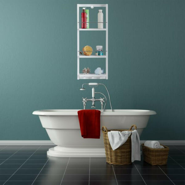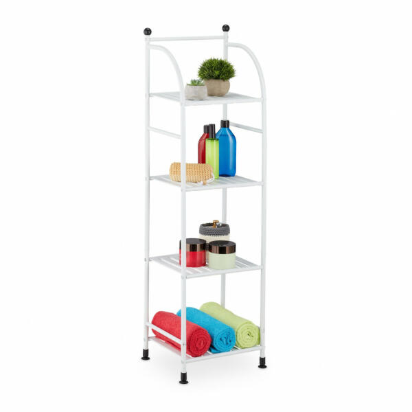 A sokoldalú fémpolccal értékes tárolóhelyet teremthet. A 4 szinten helyet biztosít a törölközőknek és a kozmetikumoknak a fürdőszobában, a kellékeknek a konyhában vagy a dekorációnak és a nappaliban a növényeknek. Kompakt méretének köszönhetően a fürdőszobai polc nagyon kevés helyet foglal el. Az oldalsó polc egyszerű kialakítását az íves keret és a rácsos pol