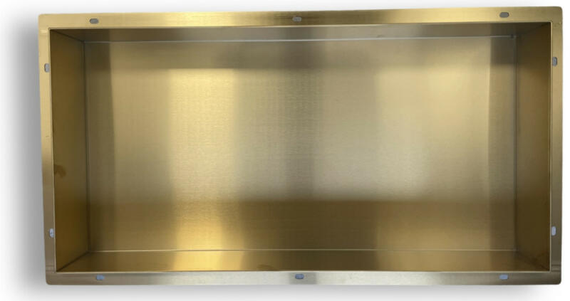 Beépíthető fürdőszobai polc anyaga: rozsdamentes acél mérete: 300 x 600 mm (pontos méreteit a képeken találja) szín: arany beépítés típusa: burkolat alatti rögzítés További információk: Fürdőszobai polc Falsík alá építhető rozsdamentes acél fürdőszobai polc, melyből beépítés után egy vékony csík fog látszódni. A rozsdamentes anyagfelhasználásnak köszönhe