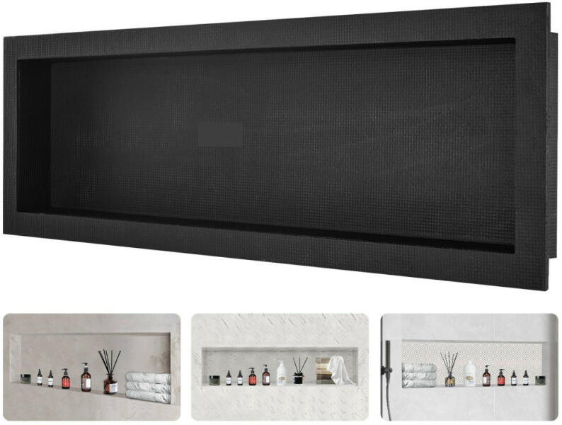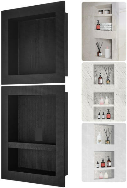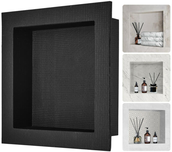 Burkolandó polc Mérete: 10 x 40,64 x 40,64 cm Típus: 1 polc Anyag: XPS műanyag Szín: fekete Súlya: 3,3 kg További információk:Fürdőszobai polc Zárt és 100%-ban vízálló burkolandó fürdőszobai polc. A polc extrudált XPS hablemezből készült. Ez nemcsak a falat védi és meghosszabbítja a fal élettartamát, hanem hatékonyan megakadályozza a víz bejutását a falba, és a be