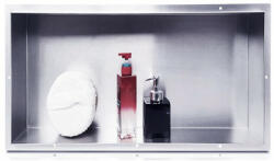Beépíthető fürdőszobai polc anyaga: rozsdamentes acél mérete: 300 x 600 mm (pontos méreteit a képeken találja) szín: natúr szálcsiszolt beépítés típusa: burkolat alatti rögzítés További információk:Fürdőszobai polc Falsík alá építhető rozsdamentes acél fürdőszobai polc, melyből beépítés után egy vékony csík fog látszódni. A rozsdamentes anyagfelhasználás