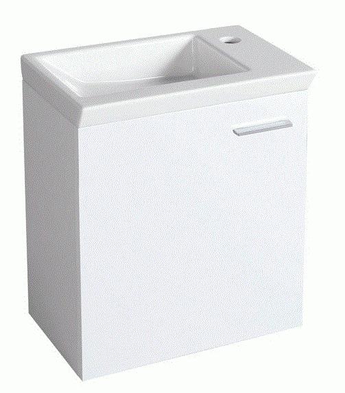 Aqualine Zoja mosdótartó szekrény, 44x50x23,5cm, fehér ZOJA - a fürdőszobabútorok új generációja!A mosdókagyló modern dizájnja harmonizál a szekrény éles széleivel, melyet alulról elegáns, krómozott fogantyúk díszitenek. A mosdószekrények falra szerelhetőek, de néhány modellt támasztólábakkal is fel lehet szerelni. A szekrények fényes-fehér és matt mali wenge deko