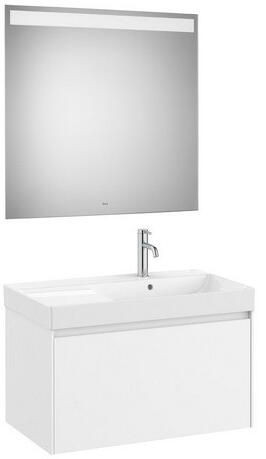 Roca Ona 1 fiókos mosdószekrény 80x46x50,5 cm jobbos kerámia mosdóval és tükörrel, matt fehér A851721509 Ona termékcsalád egyszerű, mint a természet. Funkcionális anélkül, hogy hidegnek tűnne, tiszta esztétikája, amely követi a természeti környezet eredendő melegét. Azoknak készült, akik élvezik a csendes tájak erejét. Alsószekrény tulajdonságai: Gar ancia: 2 év Te
