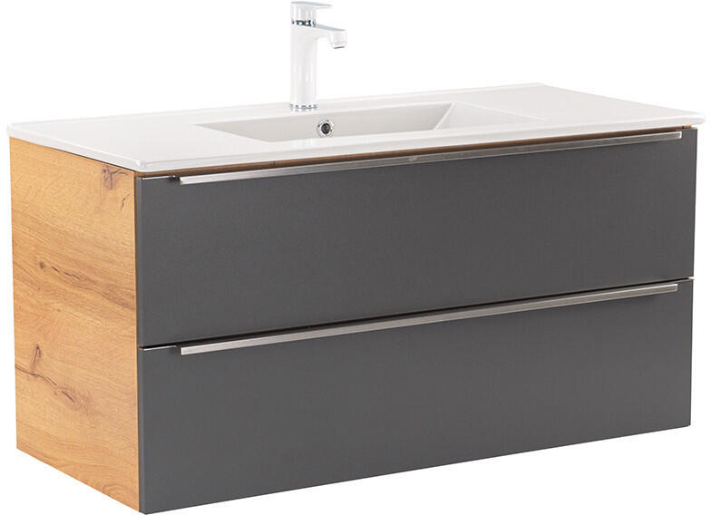 Vario Trim 100 alsó szekrény mosdóval Vario Trim 100 alsó szekrény mosdóval tölgy-antracit - stílusos és modern fürdőszobabútor A Vario Trim 100 alsó szekrény ideális választás a modern fürdőszobákba, amely ötvözi az eleganciát és a funkcionalitást. A vario bútor méretei: Szélesség: 100 cm Magasság: 52 cm Mélység: 46 cm A bútor kompakt méretei miatt kiválóan alk