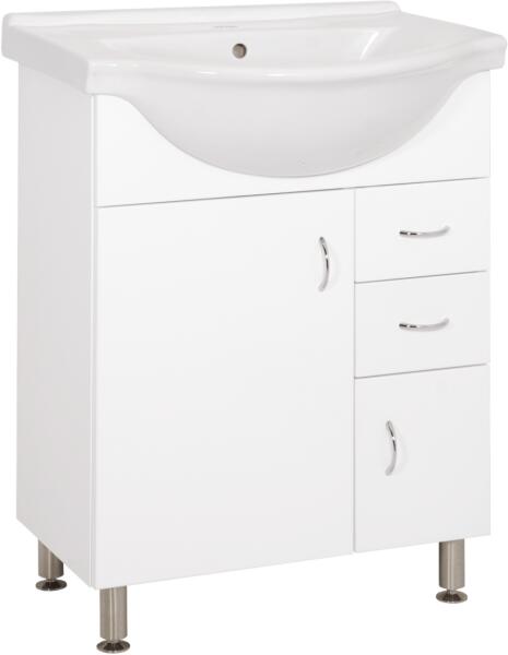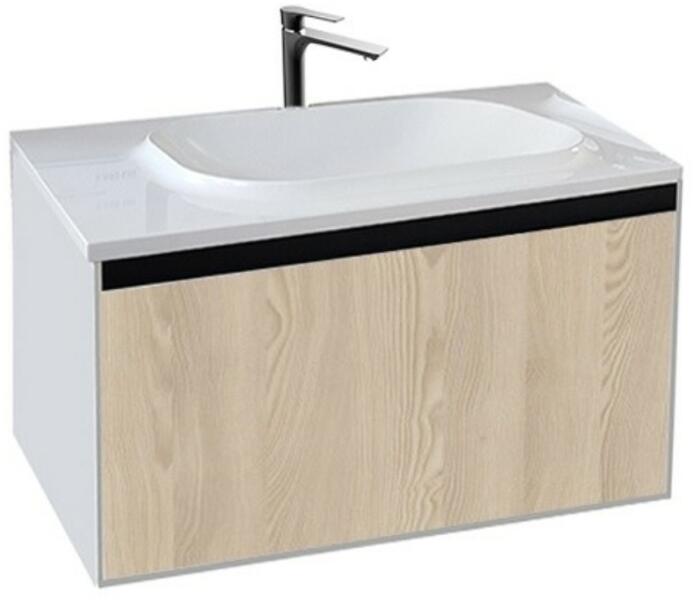Kolpa-San PANDORA 75 alsó szekrény, öntöttmárvány mosdóval. A Pandora család három színű ajtófronttal kaphatók. Bemart fogantyúi mögött, minden színváltozatnál fekete a korpusz sávja. Mosdója öntött márvány, mely az anyagfolytonos pultból, kissé kiemelkedik. Dupla mosdós verzió is elérhető (150 cm) Az ajtó nyomással nyitható, fogantyúk és kilincsek nélkül, íg