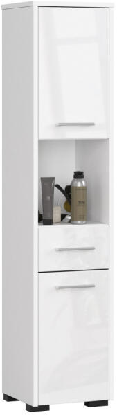 Modern, sokoldalú fürdőszobai állószekrény 2 ajtóval és 1 fiókkal, magasfényű fehér kivitelben. Tökéletes megoldás a fürdőszobai kellékek rendszerezett tárolására, falra szerelhető vagy állítható kivitelben. Elegáns tárolási megoldás modern fürdőszobákbaAz AKORD FIN fürdőszobai állószekrény a modern design és praktikus funkcionalitás tökéletes ötvözete. A