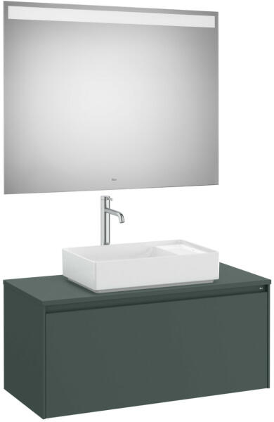 Mosdószekrény ráültethető mosdóhoz, tükörrel|Méret: 994 x 457 x 443 mm|Szín: matt zöld|1 fiókos|A tükör mérete: 800 x 1000 x 22 mm|Beépített Led világítással|Az ár a mosdót nem tartalmazza, külön szükséges megvásárolni!