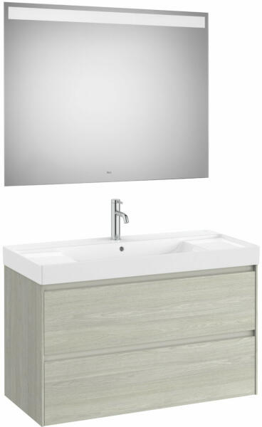 Két fiókos mosdószekrény Pack tükörrel, mosdóval|Méret: 1000 x 460 x 505 mm|Szín: világos tölgy|2 fiókos|Tükör mérete: 800 x 1000 x 22 mm|Beépített led világítással|A32768A000 mosdóval együtt