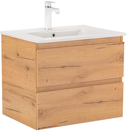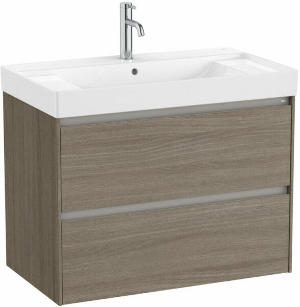 Unik mosdó+mosdószekrény középső medencével|Méret: 800 x 460 x 645 mm|Szín: sötét szil|Falra szerelhető|2 Fiókos (soft close)|1 csaplyuk középen