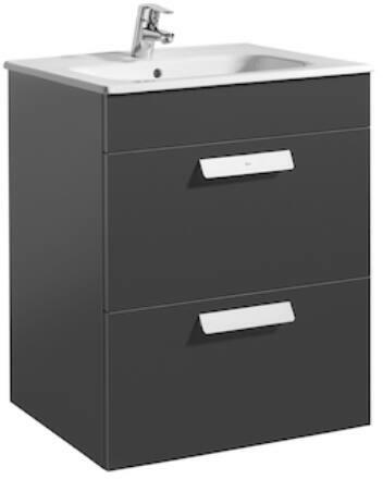 Roca Pack Debba 600 alsószekrény két fiókkal és mosdóval, antracitszürke A855966153 Szekrény méret: 60x46x72 cm 2 darab fékezett záródású fiók Kerámia mosdó, egy csaplyukkal Fali kivitel Helytakarékos szifon Opcióként rendelhető: láb, törölk&o