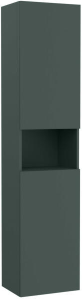 Kétajtós álló fürdőszoba szekrény nyitott polccal|Méret: 1750 x 400 x 300 mm|Szín: matt zöld|Megfordítható 2 ajtóval|Nyitott polccal|Üvegpolcokkal